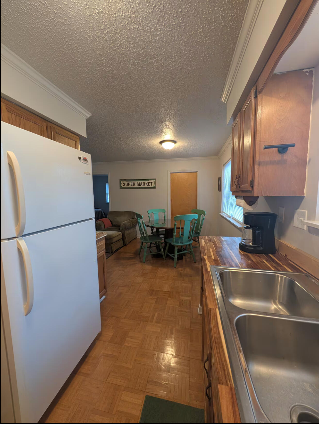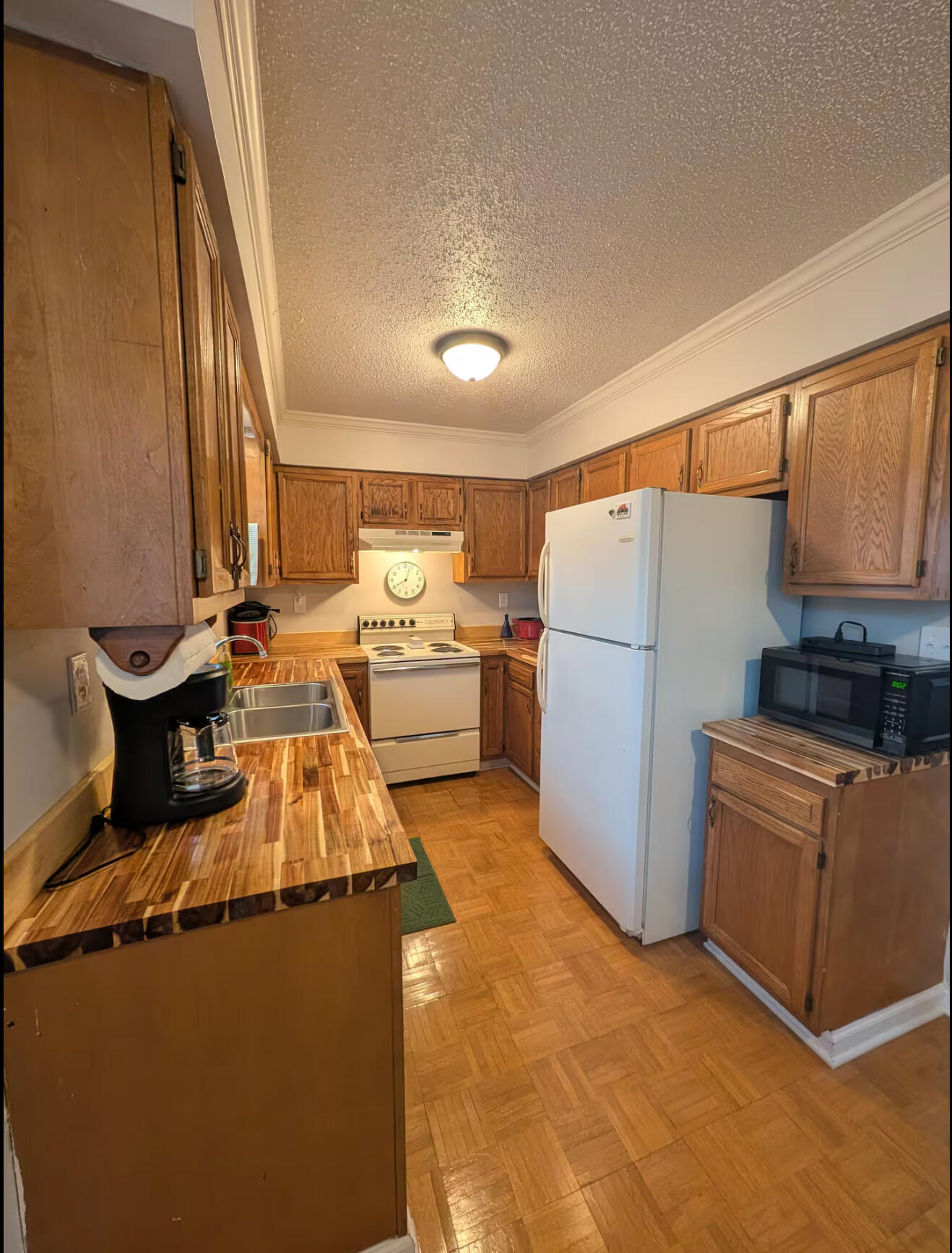Kitchenette with fridge, microwave & coffee pot. All linens are provided.